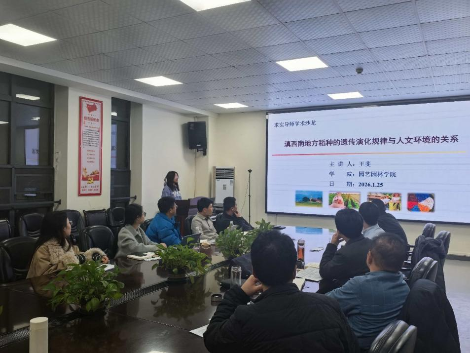 (通讯员 龚荷娟)2026年1月25日下午,永利集团y23455在农科大楼3002A成功举办了“求实导师学术沙龙”系列讲座。本次沙龙共邀请了许锋教授、张威威教授、叶家保教授、郑嘉瑞副教授、王启剑副教授、付明月副教授、江雷雨博士、王斐博士、程卓博士等九位专家学者,围绕各自研究领域的前沿动态与实践成果展开分享,吸引了众多师生积极参与。