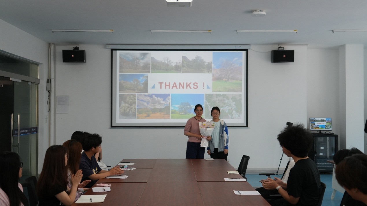 分享结束后,在场研究生就资源评价方法、关键技术路径等问题与刘老师进行了深入交流,大家纷纷表示对科研服务产业实践有了更具象的认识。学生代表为刘利平副教授献上鲜花,表达感谢与敬意。全体参与人员合影留念,本次学术沙龙在热烈的学术氛围中圆满落幕。