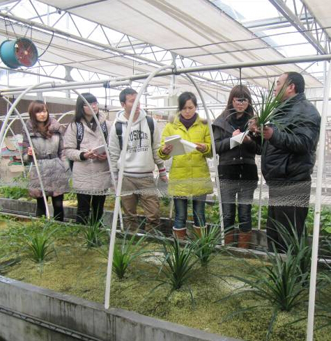 设施基地技术员给同学们讲解园艺植物的设施生产技术